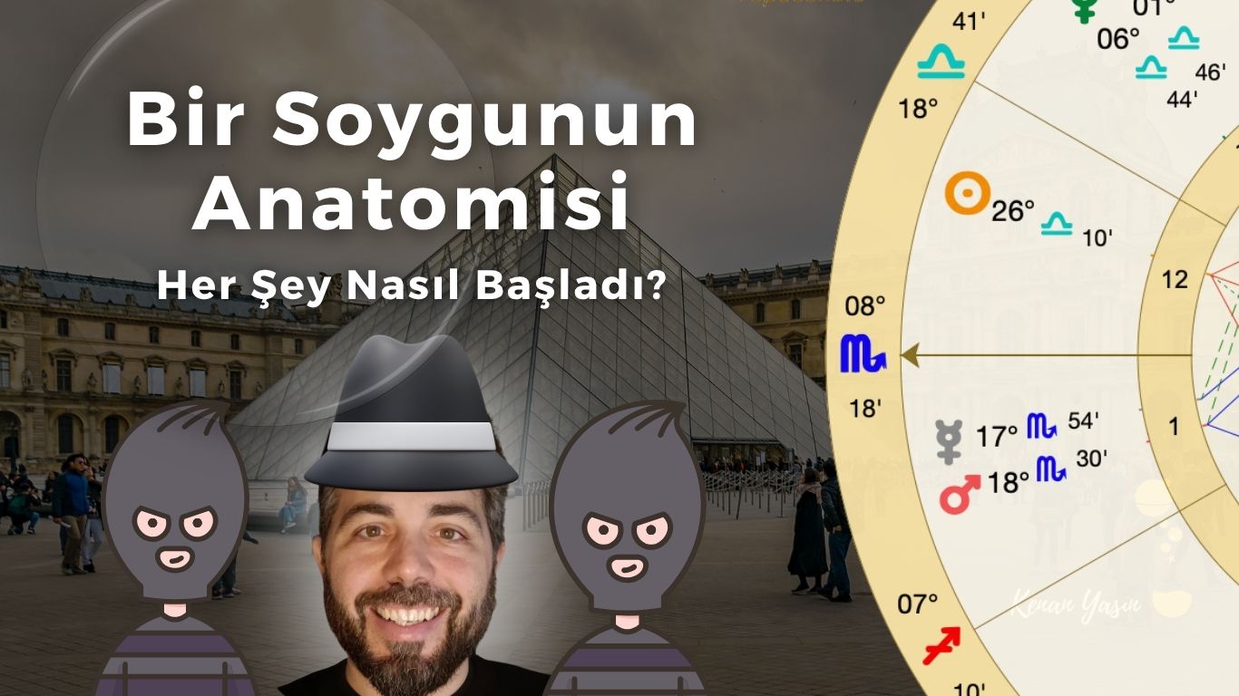 Geleneksel olarak hırsızları 7. evde, Terazi burcu ile ilişkilendiririz. Bu oldukça anlamlıdır; çünkü hırsızlar sanat eserlerinin saklandığı bir müzeyi soyuyorlar. Ancak Venüs aynı zamanda mücevherlerin doğal göstergesidir, bu yüzden daha da anlamlı hale gelir. DSC yöneticisi Venüs, kapanmakta olan Ay’a çok yakın konumda. Üstelik Uranüs 7. evde yer alıyor ve tüm eyleme zekâ, yaratıcılık ve beklenmedik bir parlaklık katıyor. Ay ve Venüs’ün aldığı üçgen açılar da bu enerjiyi destekliyor.