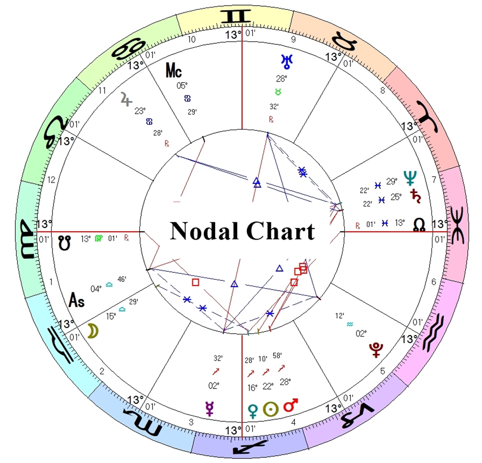 Nodal harita, çalışmamızda beden bölümleri ve organlar açısından değerlendirilebilir. Güney Ay Düğümü’nün birinci eve çekilmesiyle elde ettiğimiz teknik haritada, sorun doğrudan bedenin kendisiyle ilişkilidir.