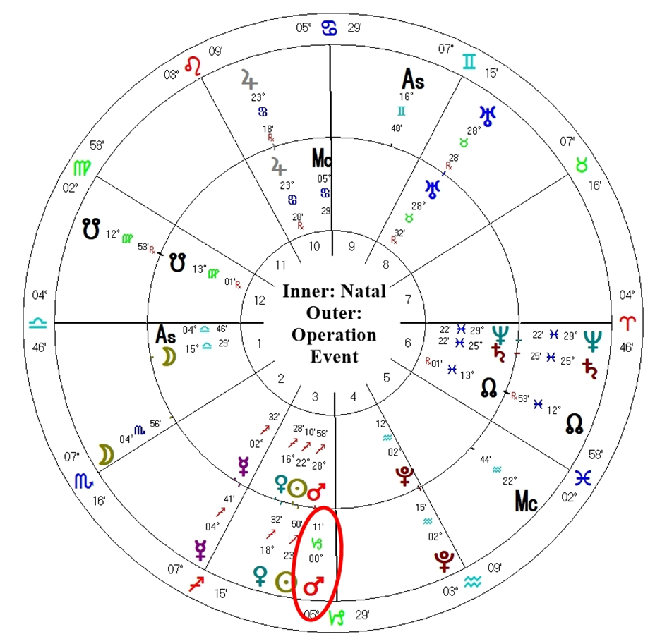Öncelikle ameliyat anında Mars’ın 0° Oğlak derecesine geçtiğini görüyoruz. Mars’ın burç değiştirme anında olması, özellikle medikal astrolojide dikkatle ele alınan bir durumdur. Mars; cerrahi müdahaleyi, kesiyi, hekimin neşterini ve operasyonel iradeyi temsil eder. Oğlak burcuna geçişiyle Mars, yücelim yöneticiliği olarak asalet kazanıyor. Yani Mars’ın doğası daha kontrollü, disiplinli ve yapılandırıcı biçimde çalışıyor.