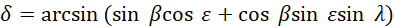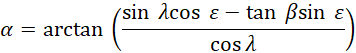 Burada matematiksel formül olarak ifade edeceğimiz için ekliptik eğikliği ε cinsinden tanımlayalım. Koordinat dönüşümünde de kullandığımız formül şu şekildedir: