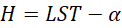 Buradaki H, cismin gözlem yerindeki meridyene göre ne kadar doğuda ya da batıda olduğunu gösterir. H harfi evrensel olarak kullanılan “hour angle” ifadesidir. Saat açısı olarak bize, cismin gözlem yerindeki meridyene göre açısal uzaklığını ifade edecektir.