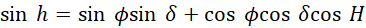 h=0 olduğu için dolayısıyla: 0=sin ϕsin δ+cos ϕcos δcos H