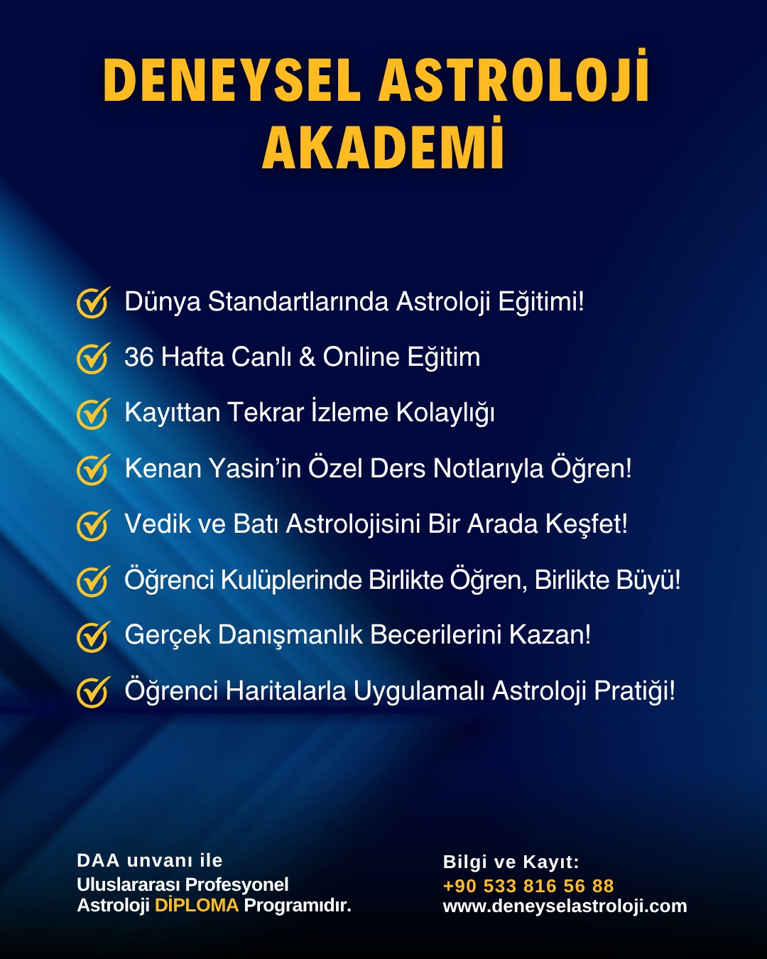 ⭐ Deneysel Astroloji Akademi olarak öğrencilerimize birebir ilgi gösteriyoruz. Mezun olduktan sonra da sizleri desteklemeye devam ediyoruz. Birçok projemizi öğrencilerimizle birlikte yürütüyoruz.